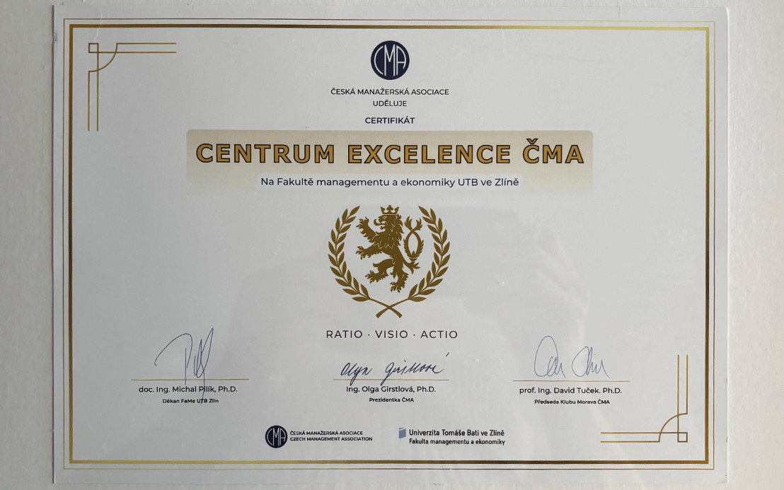 Velmi si vážím, že právě díky spolupráci s Českou manažerskou asociací (ČMA) vzniklo Centrum excelence ČMA – FaME UTB Zlín, které zahajuje svou činnost. Toto nové centrum propojuje manažery, univerzitní prostředí, studenty a inovátory a vytváří platformu, kde se zkušenosti z praxe přirozeně propojují s výzkumem a vzděláváním.